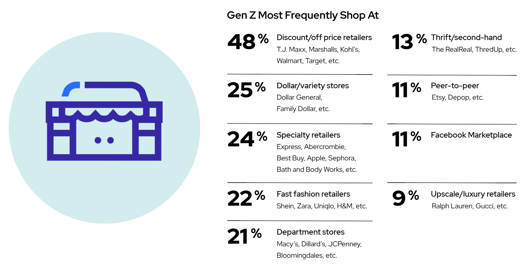 • Value = cool. Gen Z embraces the thrill of treasure hunting, thrift culture, and in-store discovery. Roughly 64% of Gen Z prefers shopping in person, defying digital-first assumptions and outpacing older generations. This makes TJX, ROST, CTRN – and increasingly KSS and WMT – true destination experiences, not just places to buy basics.